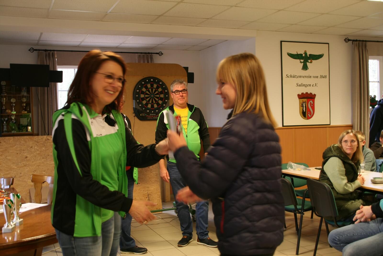 Zur Siegerehrung begrüßten Britta Löhmann und Claudia Reuter nochmals alle Teilnehmer mit ihren Betreuern, sowie Ulrich Ehlers, Präsident des gastgebenden Vereins, Wander-Pokalstifter Friedel Kelkenberg und  Bez. Pressewartin Marianne Vallan. Dem Schützenverein von 1848 Sulingen dankte sie für die Bereitstellung des Standes, ein besonderer Dank ging dabei an die fleißigen Helfer des Vereins.