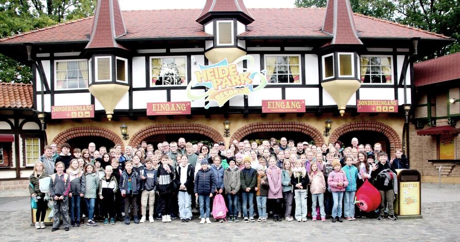 Ein Gesamtfoto vor dem Eingang zum HEIDE PARK mit den 113 Teilnehmern aus dem Bezirk Diepholz, sie alle hatten viel Spaß... man war sich einig, es war sein super Tag.