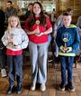 Die glücklichen Einzelsieger des Jugendpokals 2025, eingerahmt von Fiete Pohl, Anja Klanke-Luzniack, Lena und Britta Löhmann (von links)