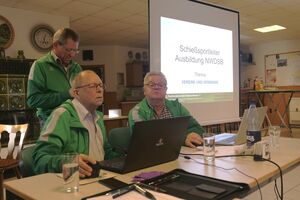 Die Ausbilder Ulrich Ehlers und Horst Brinkmann erläuterten an diesem Abend die Themen Vereine und Verbände sowie die Organisation von Schießsportveranstaltungen, Erstellung einer Ausschreibung sowie die Jugendarbeit im Verein. Am Samstag wurde die Sportordnung des DSB Teil 0 bis 14 mit den Referenten durchgenommen, dabei auch das Vereinsrecht. Die Jugendarbeit im Verein und Anfängertraining wurde den Teilnehmern sehr anschaulich erklärt.