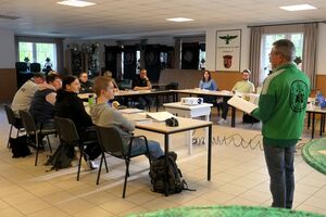 Ein "strammes" Wochenende liegt hinter den neuen Schießsportleitern. Sie hatten sich angemeldet, um die Qualifikation als geprüfter Schießsportleiter (Schießwart) zu erwerben. Die Voraussetzungen für die Teilnahme an diesem Lehrgang hatten sie erfüllt. Sie mussten mindestens 18 Jahre alt sein, eine abgeschlossene Erste-Hilfe-Ausbildung und dazu als Voraussetzung eine abgeschlossene Waffensachkunde-Ausbildung haben, und natürlich Mitglied eines dem Deutschen Schützenbundes (DSB) angeschlossenen Vereines sein. Darüberhinausgehend ist die Schießsportleiter-Ausbildung eine Voraussetzung für eine spätere Teilnahme an einer Trainer C Basis Breitensport / Trainer C Leistungssport – Ausbildung - Die Gültigkeitsdauer der Lizenz ist unbegrenzt.
