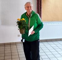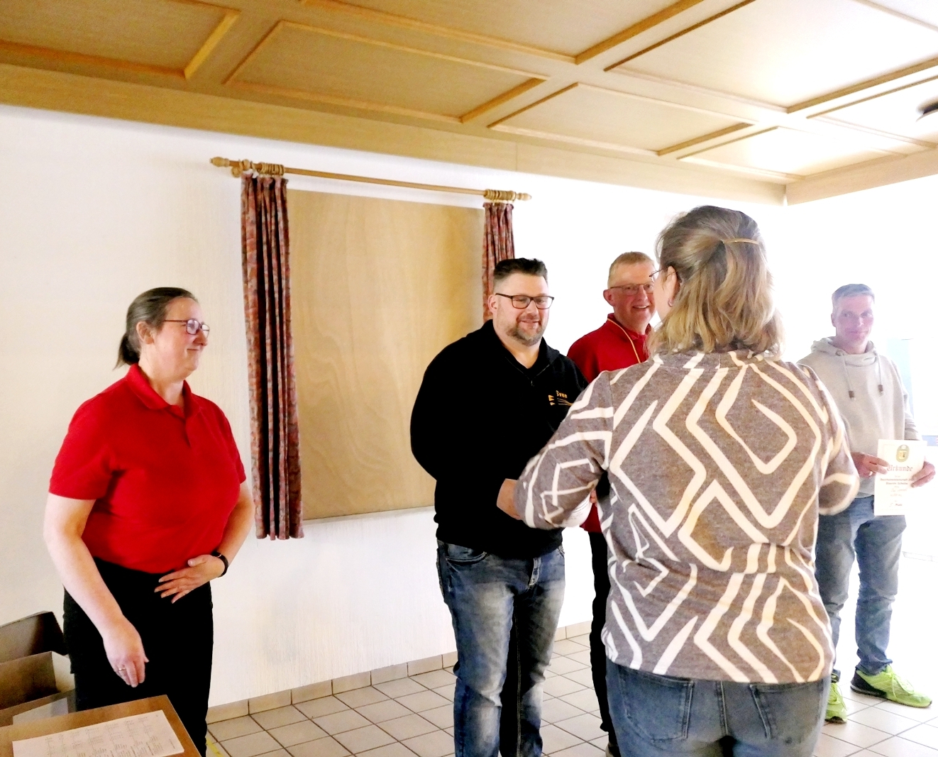 Für Marianne Vallan hatte Ina auch eine Überraschung parat: als Dank für ihre Berichte in der Vergangenheit über den Blasrohrsport, erhielt sie ebenfalls als Anerkennung von ihr eine „Wundertüte“ und eine Rose im Blumentopf. Marianne hatte ihr Amt als Pressewartin des Bezirks am Samstag beim Delegiertentag in Scholen an Katrin Meyburg vom SV Drebber von 1900 weitergegeben.