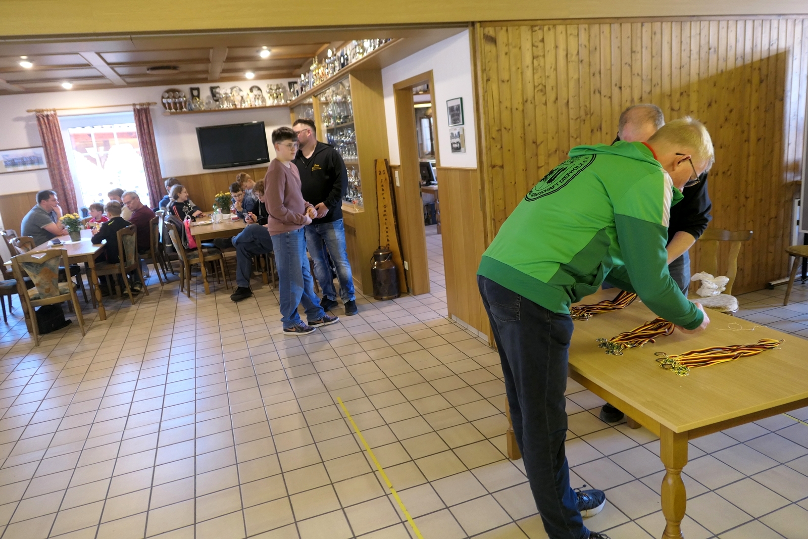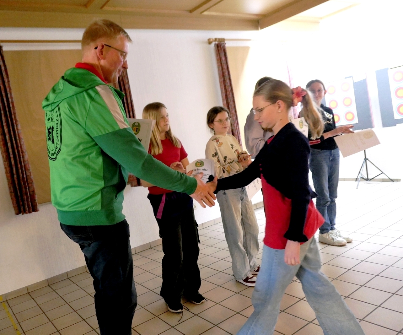 Fast alle Platzierten mit ihren Betreuern waren zur Siegerehrung noch anwesend, das freute stellv. Sportleiter Cord Borchers-Rohde. Unter dem Beifall von Betreuern, Fans und Eltern überreichten Ina Roth, Claudia Möhlenbrock und Cord Borchers-Rohde den neuen Bezirksmeistern im Blasrohrsport die Medaillen in Bronze, Silber und Gold, dazu erhielten alle Teilnehmer je eine Urkunde mit dem Ergebnis und Platzierung, dazu konnte sich jeder ein "Leckerli" aussuchen. Anschließend wurden alle für ein Gesamt - Siegerehrungsfoto „abgelichtet“.