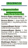 Recuve Master: 1. Jürgen Rohlfs (SV Dörrieloh) 483 Ring; 2. Jörg Abeling 434 Ring (BS Diepholz); Compound Herren: Steffen Griffel (SV Klein Lessen) 630.