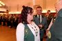 Den Einmarsch der Majestäten leitete traditionell Friedel Kelkenberg, er stellte die Königspaare in der richtigen Reihenfolge zum Einmarsch auf. Hereingerufen wurden sie von der Schatzmeisterin des Kreisverbandes IV, Edith Obenhaus.
