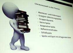 Gerd Harzmeier freute sich, als auf seine Frage ob ihnen die Ausbildung gefallen habe, ein einstimmiges ja erklang. Er und Lena Löhmann bedankten sich für die gute Mitarbeit und stellten dabei fest, dass alle mit Spaß und Freude dabei waren. Er wies noch darauf hin, dass es genügend Literatur zur Auswahl zu diesen Themen gäbe: Abenteuer u. Erlebnissport, Aktivierungsspiele, Gruppendynamik, kleine Spiele, kooperative Spiele, Reflexionsmethoden, Schießspiele, Spiele und Sport mit Alltagsmaterialien.