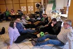 Natürlich wurden auch ein paar Aktivierungsspiele zur Auflockerung geprobt und durchgeführt. Zum Beispiel auch Zipp-Zapp-Ho, oder einen Ball sitzend (Balltranssport) nur mit den Füßen weiterzugegeben, und immer darauf achtend, dass er nicht auf den Boden fällt, dieses hat allen viel Spaß gemacht.