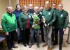 Fast alle teilnehmenden Schützen vom KV I mit "Rote Laterne-Träger" Dieter Lüdeke vom KV III und "Pokalträger" Präsident Sebastian Lampe, Bezirkssportleiter Siegfried Brockmann, namentlich von links: Nicole Tatgenhorst, Sigrid Klöcker, Andreas Pohl, Niklas Bollhorst, Daniel Wilker und Michael Meyer.