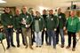 Fast alle teilnehmenden Schützen vom KV I mit "Pokalträger" Präsident Sebastian Lampe und "Rote Laterne-Träger" Dieter Lüdeke vom KV III sowie Bezirkssportleiter Siegfried Brockmann (rechts) Namentlich von links: Daniel Wilker, Klaus Bollhorst, Michael Meyer, Manfred Rüffer, Niklas Bollhollhorst, Andreas Pohl, Sigrid Klöcker.