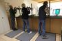 Das Gesamtfoto mit: Bezirkssportleiter Siegfried Brockmann, KV IV-Präsident Gerd Griffel, Edith Obenhaus, "Wanderpokal-Trägerin Birgit Nachtigall, Malte Bürger, Herbert Schwenker, Tagesbester Rainer Gaumann, "Rote Laternenträger" Dieter Lüdeke vom Präsident vom KV III, Meyton-Bediener Fiete Pohl (BZ-Jugendsprecher). (von links)