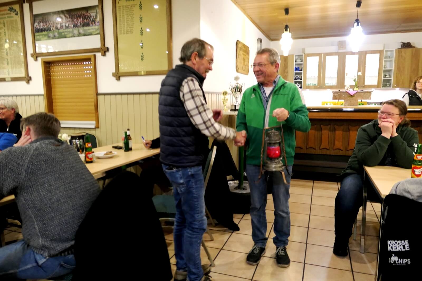 So war Siegfried Brockmann einmal „arbeitslos“ dank Fiete, so hatte er viel Zeit sich mit den verschiedenen Vorstandsmitglied aus den Kreisverbänden zu unterhalten, auch mit der anwesend Bezirksjugendsportleiterin Britta Löhmann. Es wurde ausgiebig „geklönt“, es stand dabei auch weihnachtliches Gebäck und Kaffee bereit, dieses „läutete“ schon mal die kommende Weihnachtszeit ein. Nach dem gemeinsamen Imbiss, es gab Würstchen mit verschiedenen leckeren Salaten, welches die Damen des KV IV zubereitet hatten, konnte Siegfried Brockmann anschließend schon um 20:30 Uhr mit der Siegerehrung beginnen.