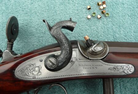 Bilder VL-Demo 001 + 002, Perkussionsgewehr 50m. Die Zündung erfolgt durch den Schlag des Hahnes auf das Zündhütchen, der erzeugte Zündstrahl wird über das " Piston " in den Pulversack der Waffe geleitet und zündet dort die Treibladung für das Geschoß.